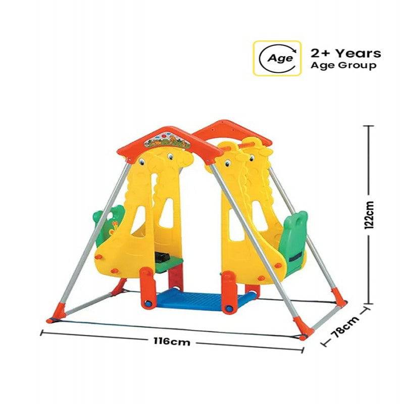 أرجوحة ملعب مزدوجة من البلاستيك بتصميم على شكل زرافة جميلة للأطفال، تُعد مثالية للأماكن الداخلية والخارجية خاصة للمنازل مع أو من دون مساحة للعب