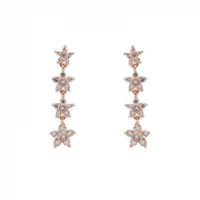 بشكل عدد من النجوم الصغيره المتدلية بلون الروز قولد ، تحتوي من الداخل على الكريستال اللامع ، تصميم حصري مصنوع من مواد آمنه على الأذن ، لا يتغير لونه مع مرور الوقت عند الحفاظ عليه وعدم تعرضه للعطور او الكريمات المعطره ، بحجم خفيف ومناسب لكل وجه.