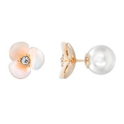 بشكل وردة لونها صدفي ولون قاعدة ذهبي ، يحتوي من الداخل على الكريستال اللامع ومن خلف الإذن لؤلؤ ، تصميم حصري مصنوع من مواد آمنه على الأذن ، لا يتغير لونه مع مرور الوقت عند الحفاظ عليه وعدم تعرضه للعطور او الكريمات المعطره ، بحجم خفيف ومناسب لكل وجه.