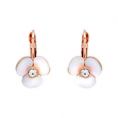 بشكل وردة متدلية بلون اوراق صدفيه ولون قاعدة ذهبي ، يحتوي على الكريستال اللامع ، تصميم حصري مصنوع من مواد آمنه على الأذن ، لا يتغير لونه مع مرور الوقت عند الحفاظ عليه وعدم تعرضه للعطور او الكريمات المعطره ، بحجم خفيف ومناسب لكل وجه.