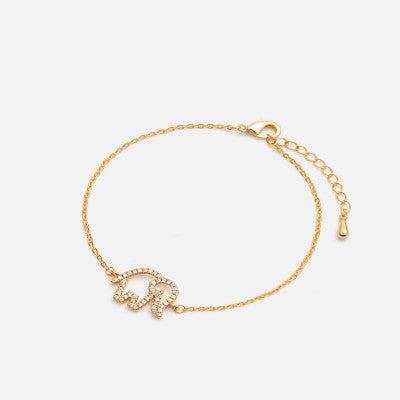 سوار باللون الذهبي بتصميم حلية بشكل فيل مفرغ ويتزين بعدد من فصوص الزركون للامع ، اسوارة أنيقة تناسب إطلالتك اليومية