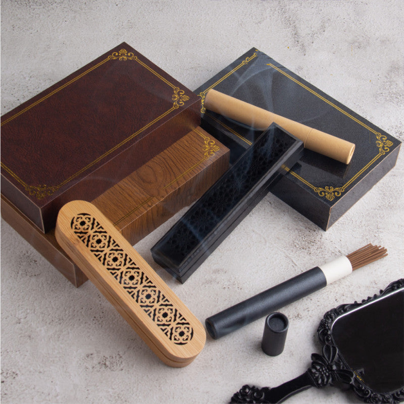 علبة أنيقة خشبية تحتوي على مبخرة ذكية بزوايا بيضاوية