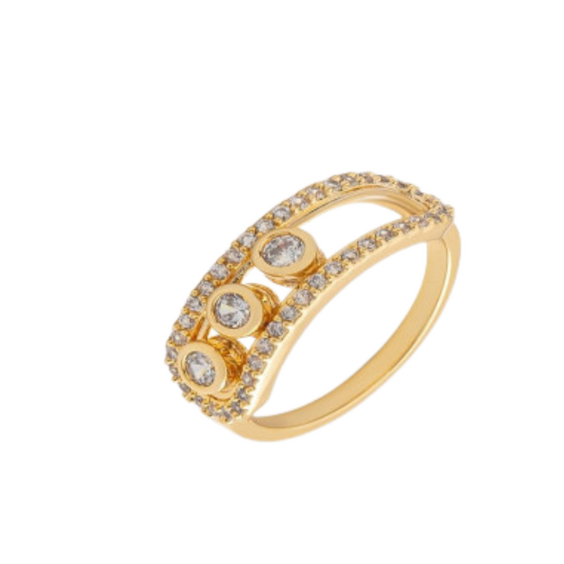 التفاصيل: خاتم يتزين بصفين مفرغه مرصعه بفصوص الزركون وتتزين فالمنتصف بعدد ثلاث من احجار الزركون