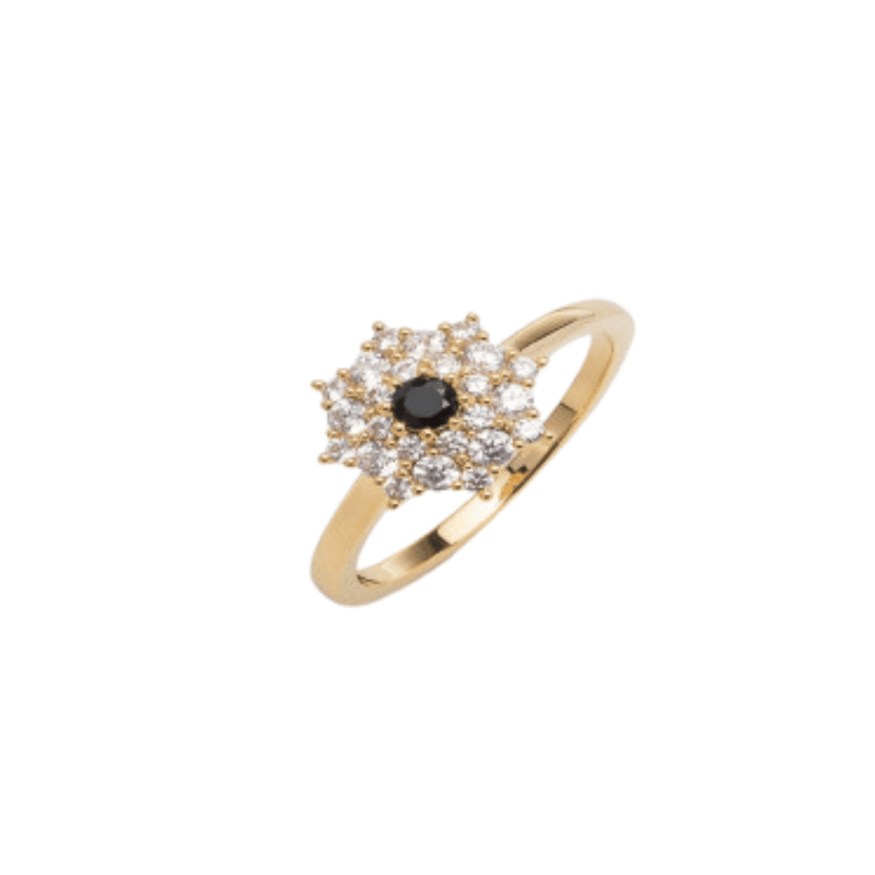 خاتم أنيق بتصميم مميز باللون الذهبي، يتميز الخاتم بتصميمه الراقي الذي يناسب اطلالتك العصريه ، خاتم مرصع بفصوص زركون براقه فالمتصف بشكل وره يتوسطها حجز وركون باللون الأسود ، نسقي الخاتم مع إحدى إطلالاتك لتنعمي بحضور ساحر