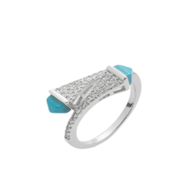 الـــلــــــــون: الفضي يتزين بفصوص الزركون اللامع وحجر زركون بلون فيروزي