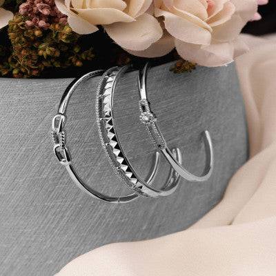 الاسوره الأولى بتصميم اسورتين متصله معا واحداها مرصعه بفصوص من الزركون اللامع ، والاسواره الثانيه تميزت بتصميمها الناعم البسيط والمرصع بعدد من فصوص الزركون في المنتصف بتصميم مفرغ ، اما الاسواره الثالثه تميزت بتصميما الناعم والملفت بحلي متداخله ومترابطه معا في المنتصف ، هذه المجمرعه من الاساور إختيارك المثالي لتكتمل بها اطلالتك