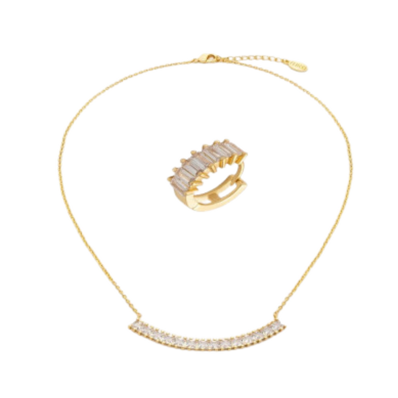 الـــلــــــــون: الذهبي يتزين بحلية بشكل طولي مرصع بفصوص من الزركون اللامع