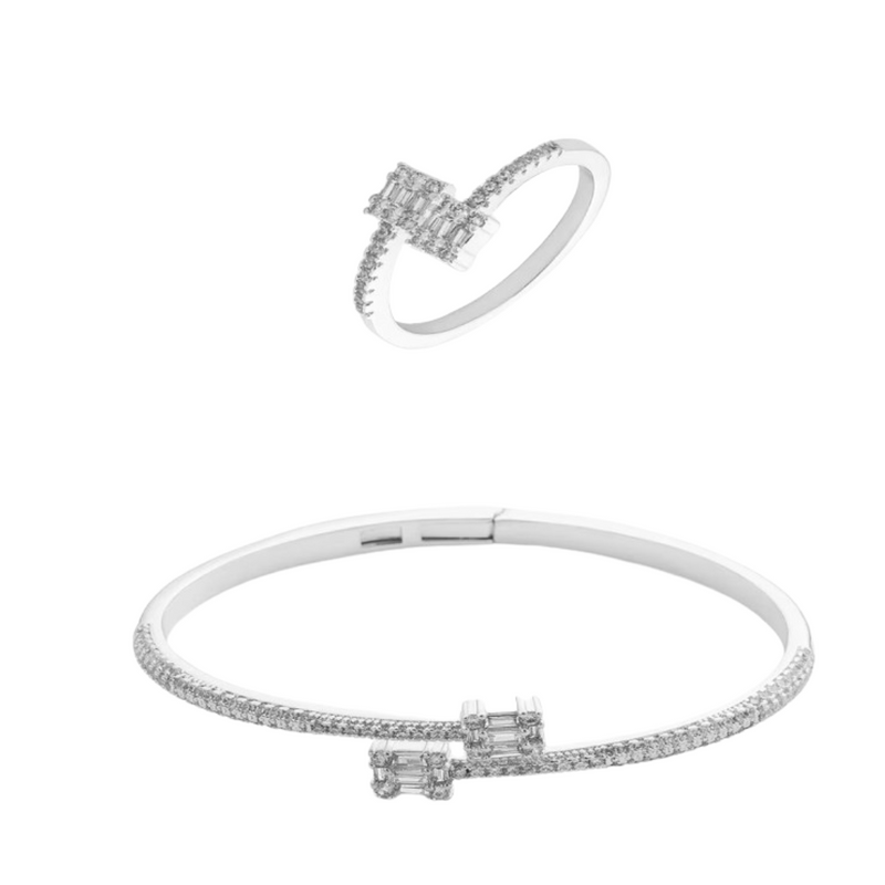 الـــلــــــــون: الفضي بتصميم أنيق متداخل و مرصع بفصوص وأحجار الزركون اللامع