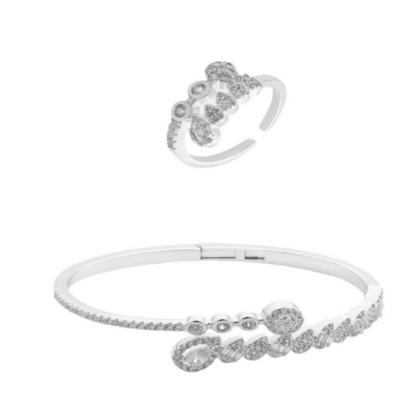 الـــلــــــــون: الفضي بتصميم أنيق متداخل و مرصع بفصوص وأحجار الزركون اللامع