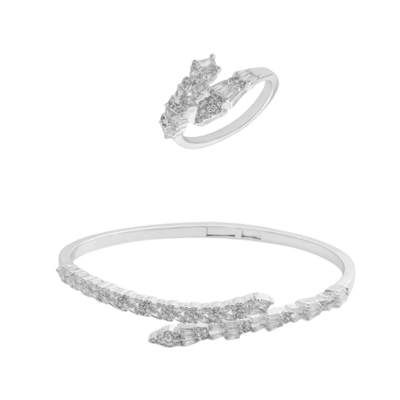 الـــلــــــــون: الفضي بتصميم جذاب متداخل و مرصع بفصوص وأحجار الزركون اللامع