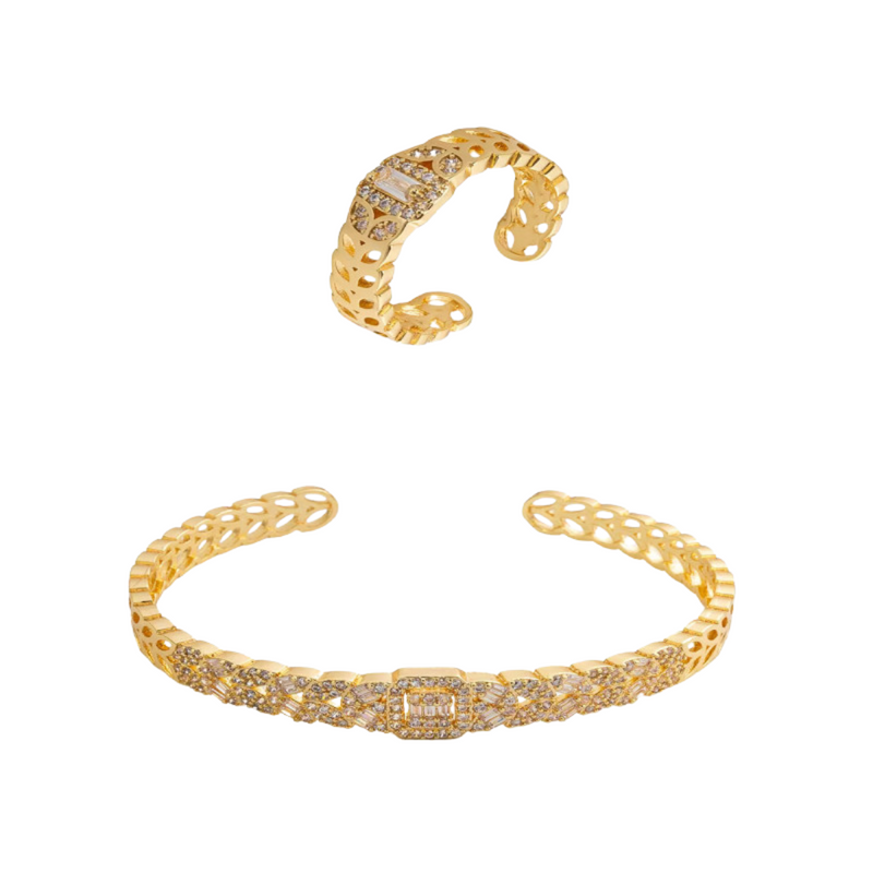 الـــلــــــــون: الذهبي بتصميم راقي وعريض مرصع بفصوص وأحجار الزركون اللامع