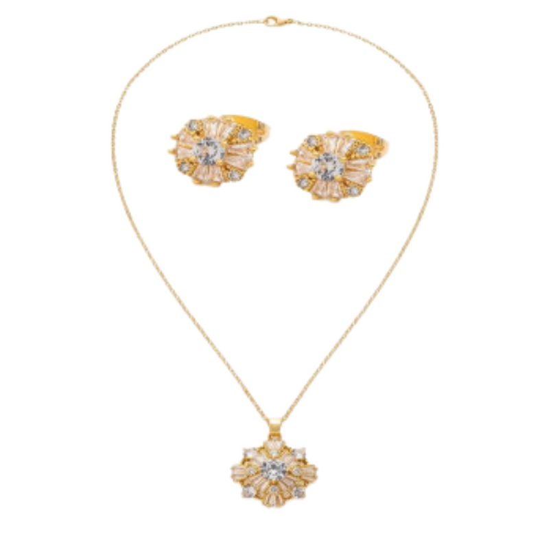 يتميز الطقم بتصميمه الأنيق بحليه بشكل ملفت تتزين بفصوص من الزركون اللامع