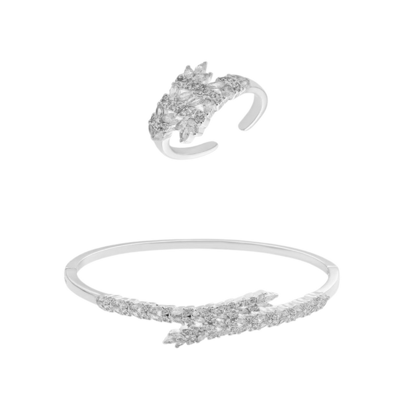 الـــلــــــــون: الفضي بتصميم مميز مرصع بفصوص من الزركون البراق