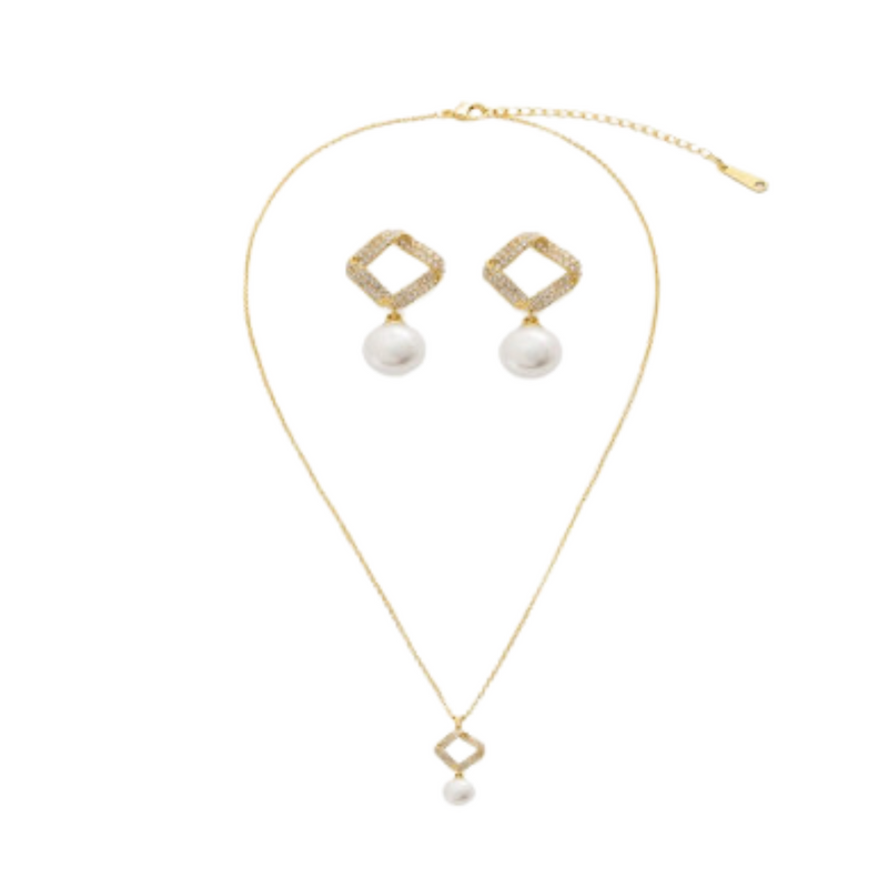 يتميز الطقم بتصميمه الذي يتزين بحليه بشكل مفرغ تتزين بفصوص من الزركون اللامع وتتدلى منه حلية بشكل لؤلؤة