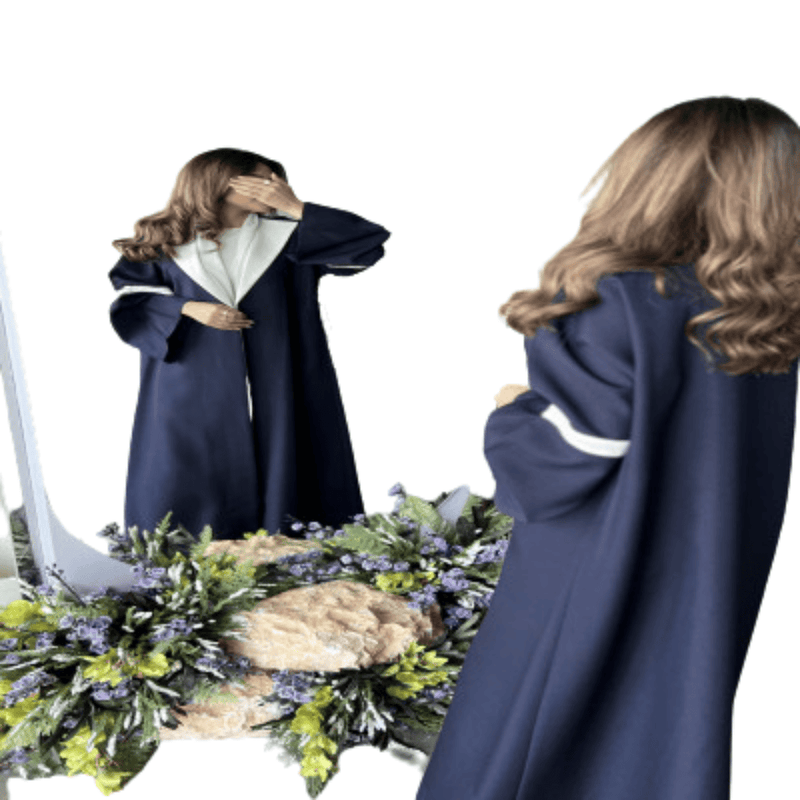 عبايه نص كلوش بتصميم بليزر انيق مع شريط ابيض عالاكمام, يوميه عمليه مناسبه لزيارات و السفر