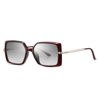 نظارة شمسية نسائية ، لهذه النظارة تصميم كلاسيك أنيق بعدسات مربعة ، نظارة لطله مفعمه بالثقة والأناقة ، تتميز النظارة بعدسات باللون الأسود وبذراع بلون فضي و إطار عودي، تناسب هذه النظاره الشمسيه إطلالاتك المهمة، لتبرز حضورك وأناقتك .