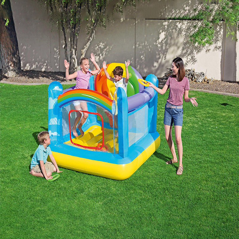 Bestway Jumpin 'Balloon Bouncer سيصل الأطفال إلى Sky في Bestway® Jumpin 'Balloon ™ Bouncer! يمكنهم القفز حتى يسقطوا ، ولعب الحلقة مع السنانير التفاعلية على البالون إلى محتوى قلوبهم. تجعل الجدران الشفافة من السهل على الآباء مراقبة الأطفال أثناء اللعب طوال اليوم. لن يكون الأطفال ينفجرون فقط أثناء لعبهم في هذا الحارس ، بل سيقومون أيضًا بتطوير المهارات الحركية وتنسيق العين والبراعة. سوف يتعلم الأطفال الوعي المكاني ، وبناء العضلات واكتساب القوة أثناء القفز واللعب. اسمح للعب بأن يكون أداة التدريس التي تساعد أطفالك على اتخاذ الخطوة التالية في تطورهم. أضف حارس البالون Jumpin إلى غرفة اللعب الخاصة بك أو الفناء الخلفي الخاص بك وجعل يوم طفلك أكثر سارة وأكثر متعة! الحجم: 1.75 م × 1.73 م × 1.37 م / 69 بوصة. × 68 بوصة × 54 بوصة. قدرة الوزن: 85 كجم (188 رطل) مثالي لما يصل إلى 3 أطفال ، تتراوح أعمارهم بين 3+ يتضمن الحارس لعبة حلقة التفاعلية و 3 حلقات قابلة للنفخ جدران شفافة لسهولة الرؤية رائع للاستخدام الداخلي والخارجي المحتويات: 1 الحارس ، 3 حلقات قابلة للنفخ ، تصحيح إصلاح Jumpin 'Balloon ™ Bouncer تطور: - المهارات الحركية الدقيقة: تساعد طفلك على تطوير تنسيق العين والمستويات الأساسية للبراعة - المهارات الحركية الإجمالية: يحفز قدرة طفلك على الاستيقاظ والتحرك والسيطرة على أجسادهم وحركتهم - الخيال: يشجع طفلك على الحلم بطرق جديدة لرؤية العالم من حولهم - الثقة والتواصل: يعزز احترام طفلك لذاته من خلال اللعب التفاعلي الجدران الجانبية الشبكية لرؤية الوالدين حارس قوس قزح التفاعلي الملون والتفاعلي حلقة إرم اللعبة مع خطافات جانبية مدمجة 3 حلقات قابلة للنفخ المحتويات: 1 الحارس ، دبابيس 4 أقدام ، تصحيح إصلاح