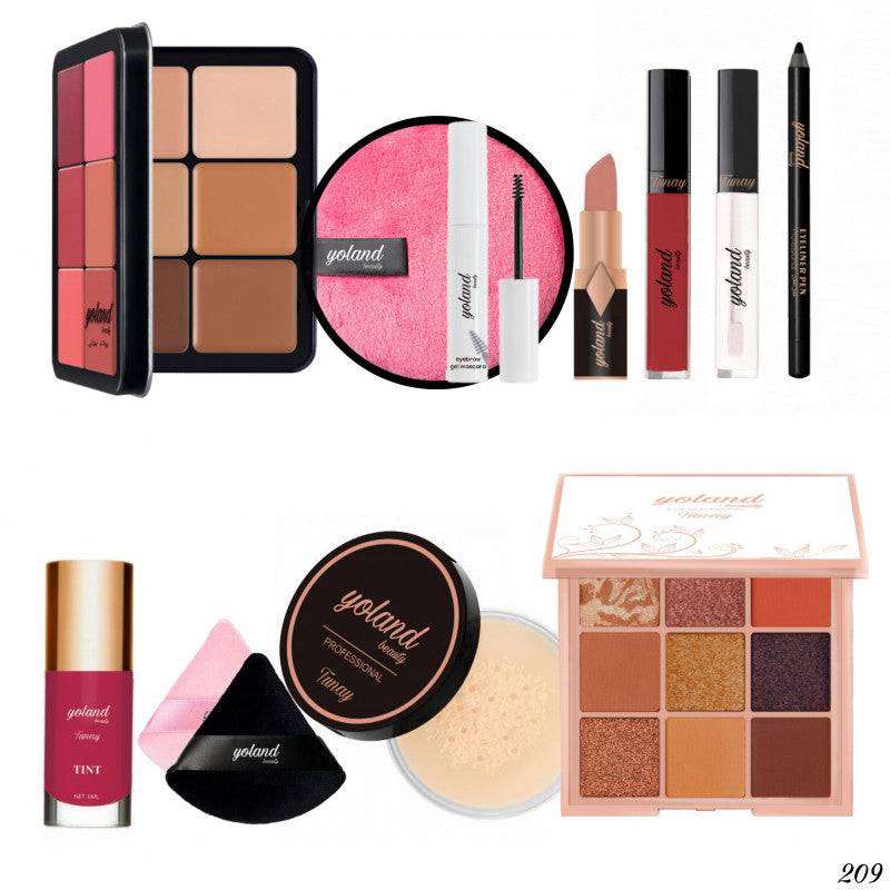 المكونات: باليت كريمي كنتور وبلاشر ظل عيون توناي قلم كحل كريمي اسود قلوس توناي شفاف احمر شفاه توناي سائل احمر شفاه توناي كريمي مسكرة حواجب شفافه اسفنجه ألياف لازالة المكياج اسفنجه مكياج مثلثة بودرة منثورة تنت توناي مورد شفاة 6مل