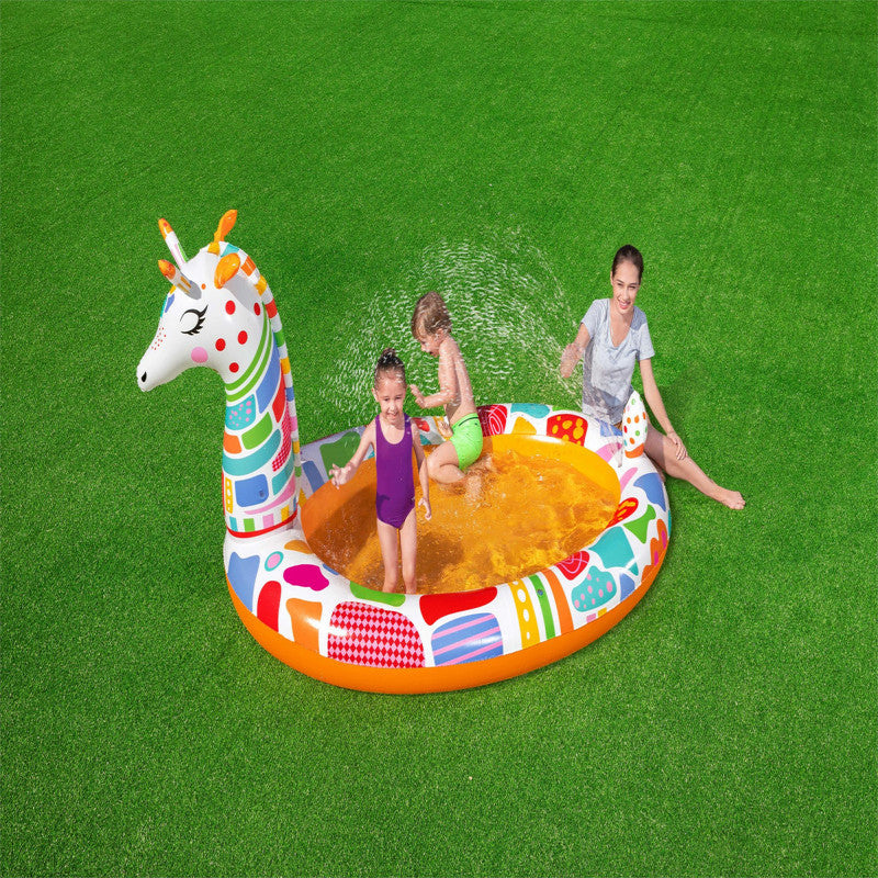 Bestway Groovy Giraffe play play pool. قم بإشراق الفناء الخلفي الخاص بك ويوم واحد الخاص بك مع حمام سباحة لعب الزرافة الرائعة. سيكون لديهم انفجار طوال الصيف يلعب مع هذا الحيوان Safari. ستضيف الطباعة المشرقة والرائعة ، إلى جانب بخاخ المياه المدمجة ، دفقة حرفية للعب الوقت! الحجم: 2.66 م × 1.57 م × 1.27 م (8 أقدام و 9 بوصات. × 5 قدم. مثالي للأطفال ، الأعمار 2+ تضيف طباعة الزرافة المشرقة والرائعة شخصية إلى وقت اللعب بخاخ مياه مدمج لمزيد من المرح حرر المياه من خلال صمام التصريف سهل الاستخدام سعة الماء: 220 لتر (58 جالون) المحتويات: 1 Play Pool ، 1 تصحيح إصلاح. * رسومات طباعة الزرافة المشرقة * يرتبط بخاخ الماء بخرطوم الحديقة * يطلق ماء حمام السباحة مع صمام التصريف سهل الاستخدام * سعة الماء المصممة: 220 لتر (58 جالون). المحتويات: حمام سباحة واحد ، تصحيح إصلاح