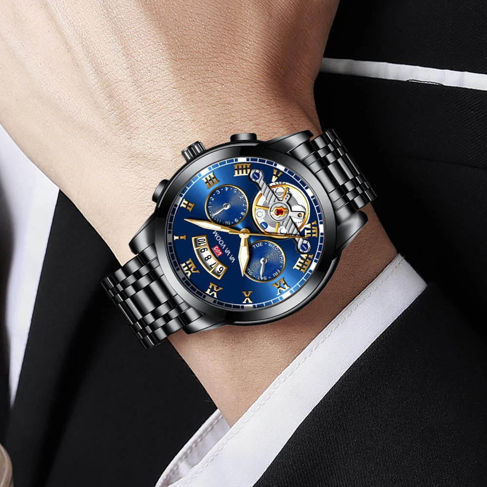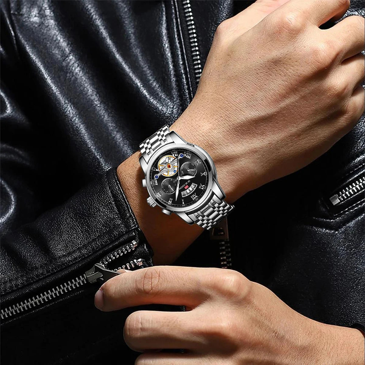 xساعة رجالية تجمع بين الأناقة والعملية من علامة، مصممة بأسلوب الطيار الكلاسيكي لمحبي الستايل الفخم. تأتي بهيكل معدني متين من الستانلس ستيل مع قرص 41مم يعرض الوقت بدقة عالية بفضل حركة الكوارتز. مقاومة للماء حتى 3 بار لتناسب الاستخدام اليومي. تصميمها العصري يجعلها مثالية للمناسبات الرسمية والرياضية على حد سواء.