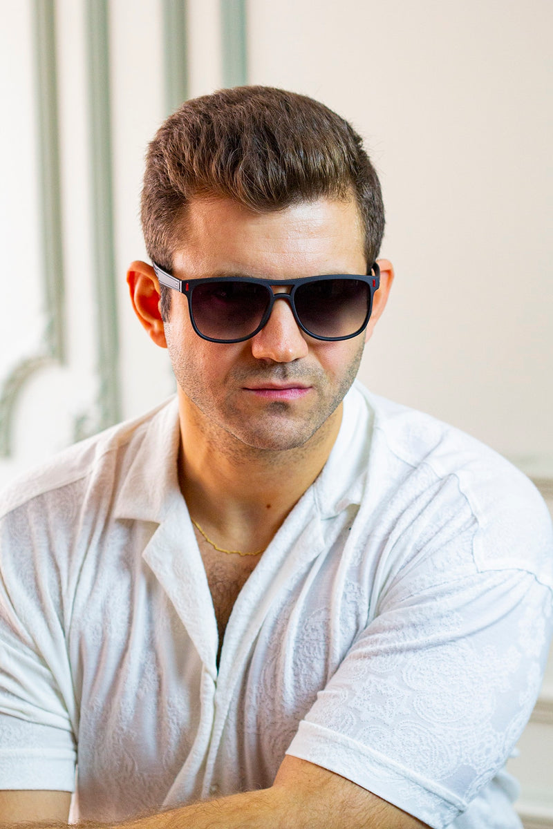 نظارة شمسية فاخرة من طراز بتشطيب مات أسود، تجمع بين التصميم الإيطالي والأداء العالي لحماية عينيك بأناقة.