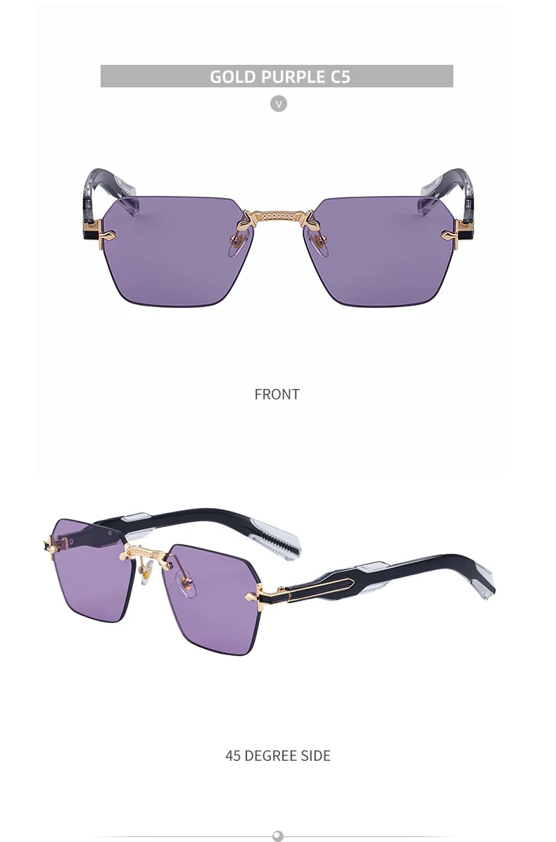 نظارة شمسية عصرية بدون إطار بتصميم بوليجون جريء يجمع بين الطابع الكلاسيكي والستايل العصري لمحبي الإطلالة المميزة. تتميز بعدسات متدرجة توفر حماية UV400 كاملة من أشعة الشمس الضارة، وإطار خفيف يمنح راحة عند الارتداء لفترات طويلة. خيار مثالي للرجال الباحثين عن نظارة فريدة بإحساس فاخر ولمسة عصرية.