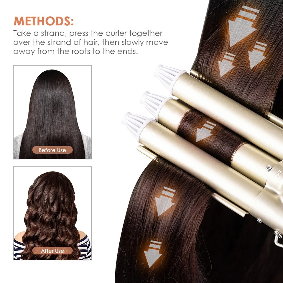 مموج الشعر الكهربائي هو أداة تصفيف الشعر تستخدم لتشكيل تموجات وتجعيدات في الشعر بطريقة سهلة وسريعة. تعتمد الأداة على الحرارة لتشكيل الشعر بشكل جميل ومتناسق