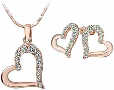 x1 مجموعة قلادة القلب الذهبية ( قلادة و زوج أقراط )