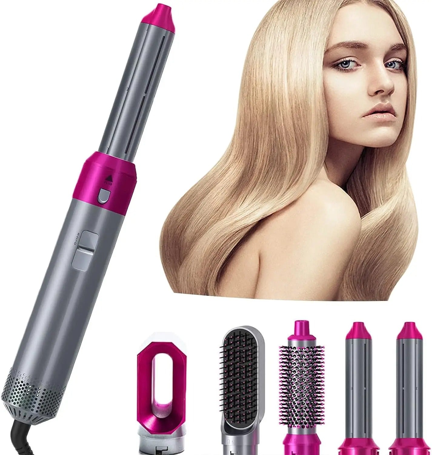 يأتي بخمسة ملحقات قابلة للتبديل تجعل استقامة وتجعيد الشعر وتكثيفه وتدليكه أمرًا سهلاً. من خلال الجمع بين تجفيف الشعر وفرشه و تصفيفه