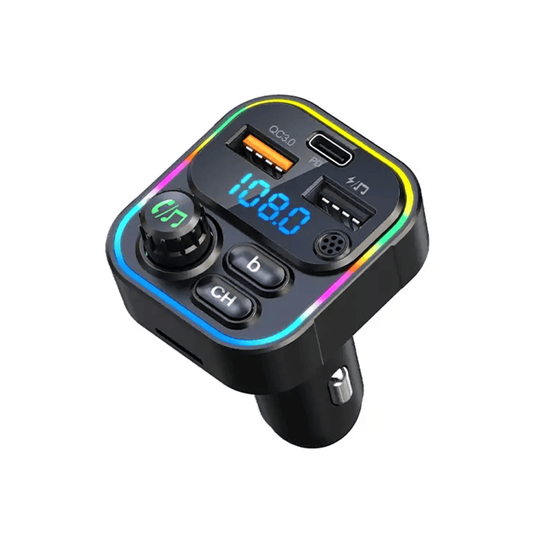 جهاز للسيارة يعمل بالبلوتوث ومحول صوت لاسلكي يعمل بمنفذ مزدوج سريع الشحن