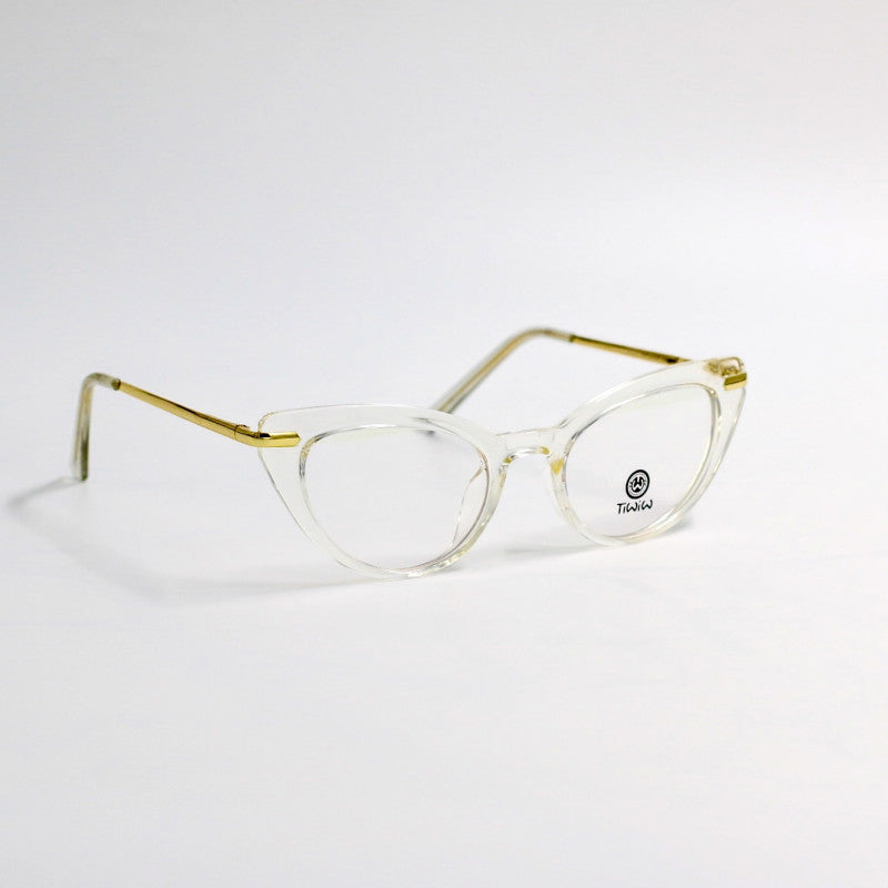نظارة عيون القطة نسائية تتميز بمظهر المعروف ب عيون القط الحاد وتتميز بميزة الجودة العالية وضد الكسرالايطار : شفاف ، ذهبي